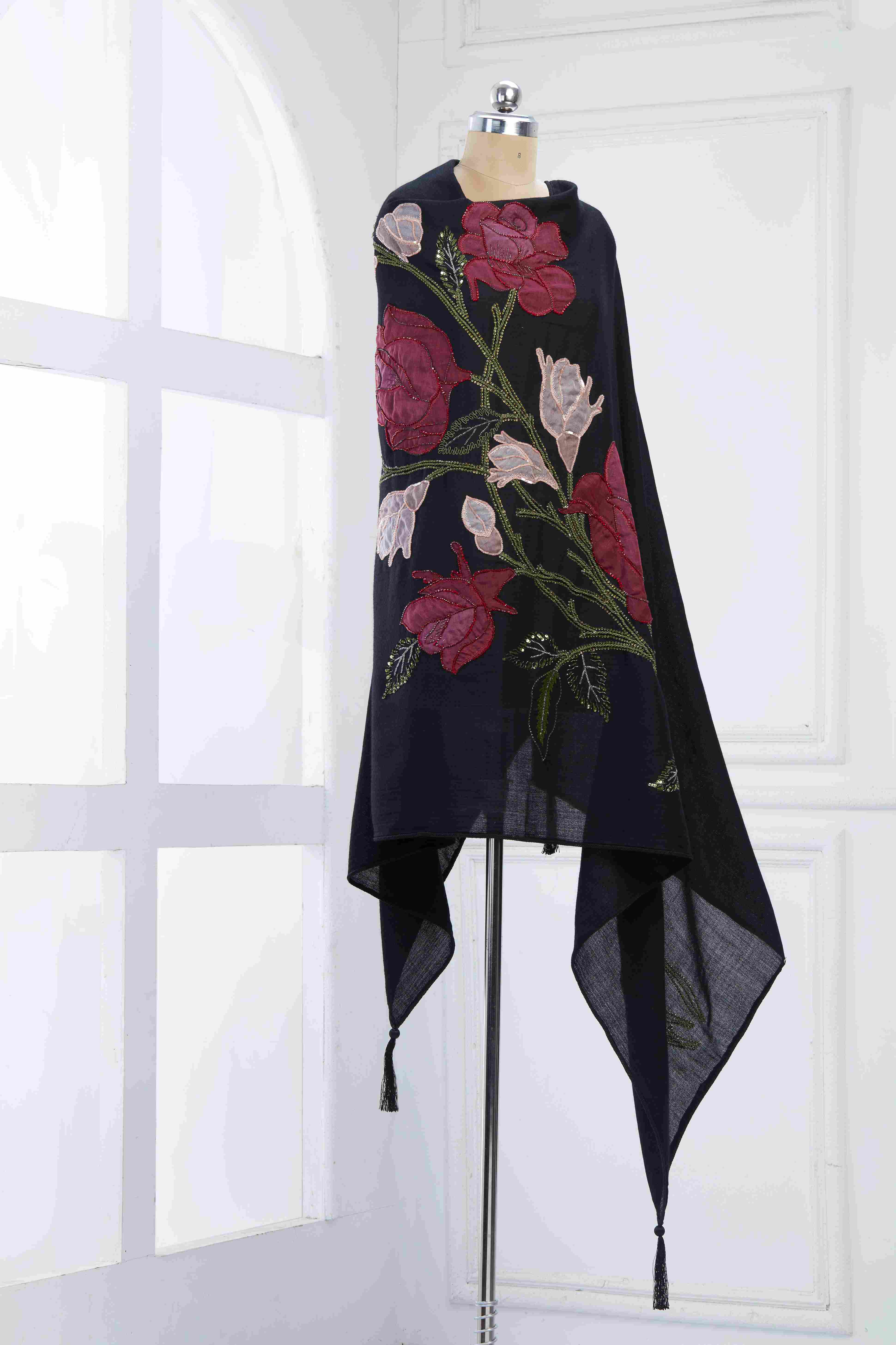 Rich maroon rosettes unfurl across a deep black canvas, their dramatic contrast captivating the eye with silent intensity. Like a secret whispered in the shadows, the flowing olive-green stemwork wraps around the form, crafted through a rare knotting technique that embodies fluid grace.Every element, meticulously hand-finished by skilled artisans, elevates this creation into a masterpiece that transcends mere fashion. More than an accessory, it is a wearable work of art—designed for evenings that crave quiet enchantment, for moments that demand timeless allure.
